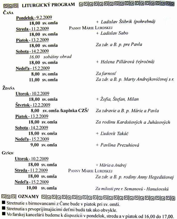 Program sv.omši 9.2.2009 - 15.2.2009